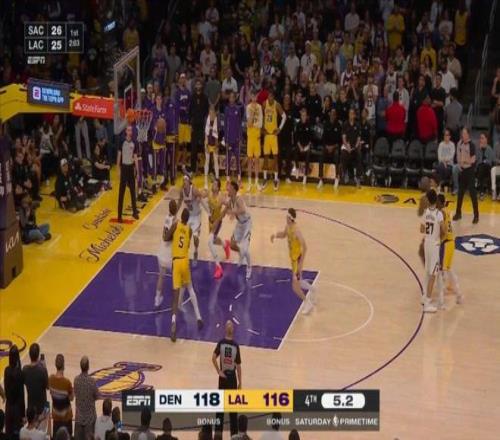 常規(guī)賽,湖人主場(chǎng)127-125加時(shí)戰(zhàn)勝掘金。