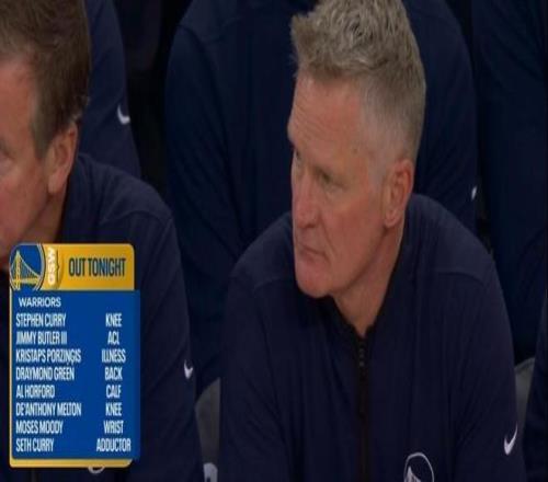 本場庫里(膝傷)、巴特勒(報銷)、波神(生病)、追夢(背傷)、霍福德(小腿傷)、梅爾頓(膝傷)、穆迪(手腕傷)、賽斯庫里(內(nèi)收肌傷)悉數(shù)缺席。