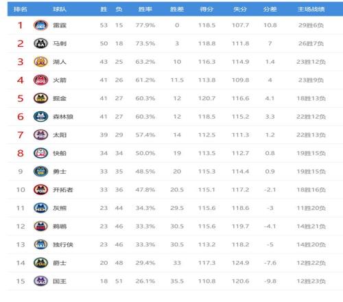 今日比賽后鵜鶘、獨(dú)行俠排名互換,其他西部球隊(duì)排名不變。