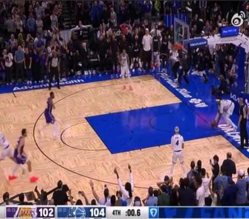 此時(shí),比賽還剩下0.6秒,魔術(shù)最后一投不中,比賽到點(diǎn)結(jié)束。