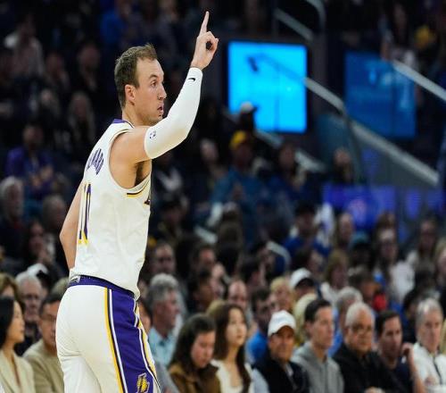 東契奇也沖了過(guò)來(lái),湖人三巨頭眾星拱月一般將肯納德圍在中央,也讓這位三分射手激動(dòng)不已。
