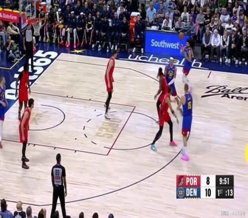除了補防護框戈登還有其他作用,比如作為第三持球點為約穆分擔(dān)持球壓力。這個進攻回合中,戈登不僅運球過半場,還在三分線策應(yīng)約穆打成了一個戰(zhàn)術(shù)。先給約基奇?zhèn)髑蛉缓笥纸o穆雷做了定點掩護,幫助穆雷完成三分出手。