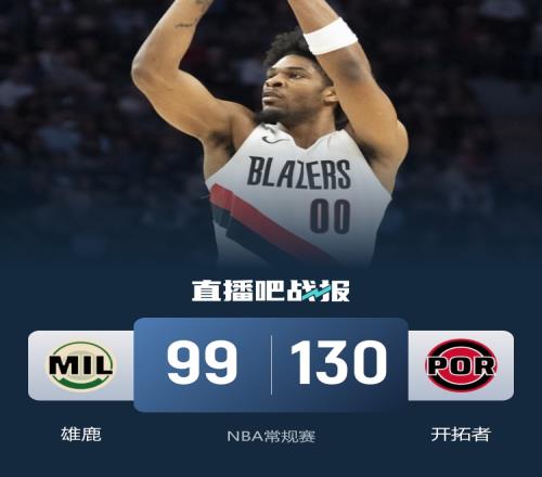 開(kāi)拓者7人上雙大勝雄鹿亨德森23分羅林斯生涯新高36分