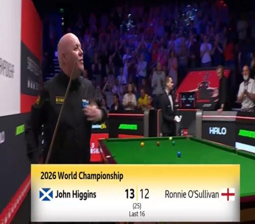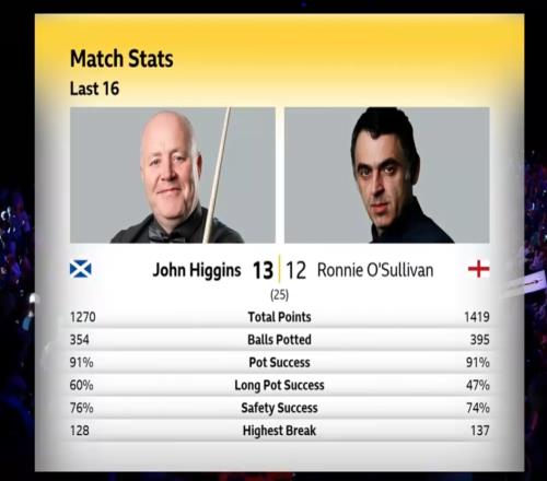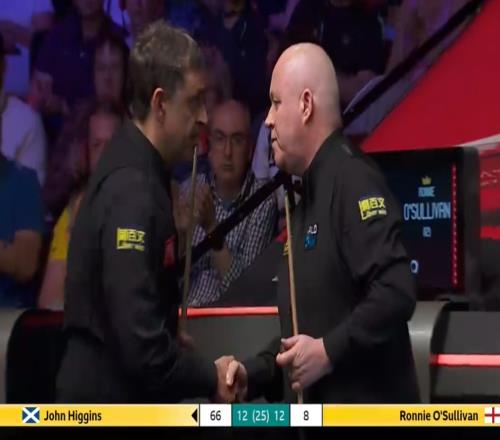第二十五局,希金斯取勝,最終希金斯13-12逆轉(zhuǎn)奧沙利文晉級世錦賽8強。