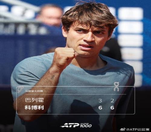體育播報4月28日宣 馬德里大師賽第三輪,科博利2-0輕取資格賽選手巴列霍。