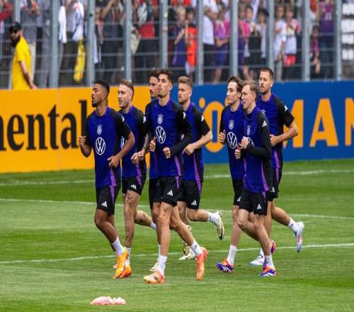 賴茨在一眾德國國腳中奔跑,其中包括他未來在萊比錫的隊(duì)友勞姆與亨里希斯。這張照片攝于2024年德國隊(duì)歐洲杯備戰(zhàn)期間,賴茨與未來的隊(duì)友勞姆、亨里希斯同框。