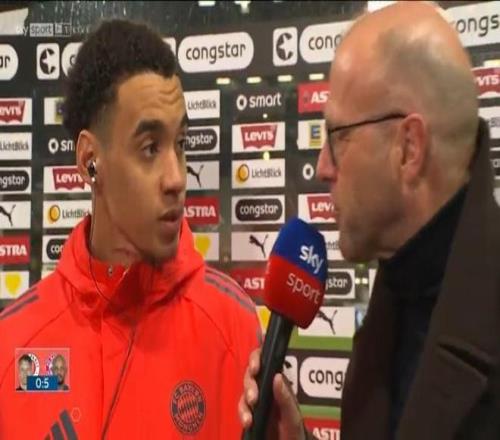 在客場(chǎng)5-0大勝圣保利的賽后,本場(chǎng)比賽傳射建功的拜仁中場(chǎng)穆西亞拉接受了德國(guó)天空體育的采訪。