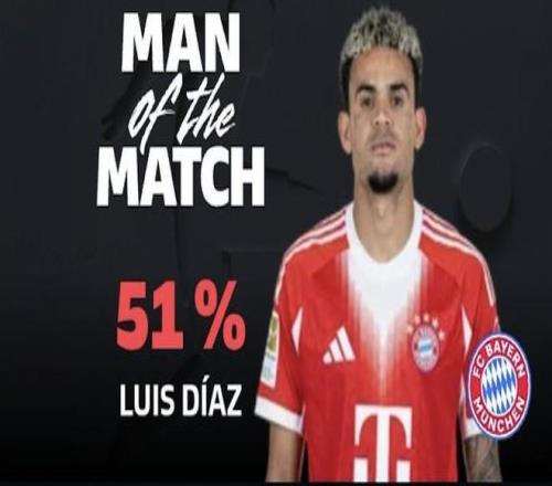 最終經(jīng)過(guò)德甲官網(wǎng)球迷投票,路易斯-迪亞斯以51%的得票率當(dāng)選本場(chǎng)比賽最佳球員。