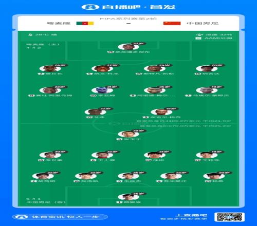 體育播報(bào)03月31日宣 FIFA系列賽第二場,國足vs喀麥隆的首出爐,國足變陣541。