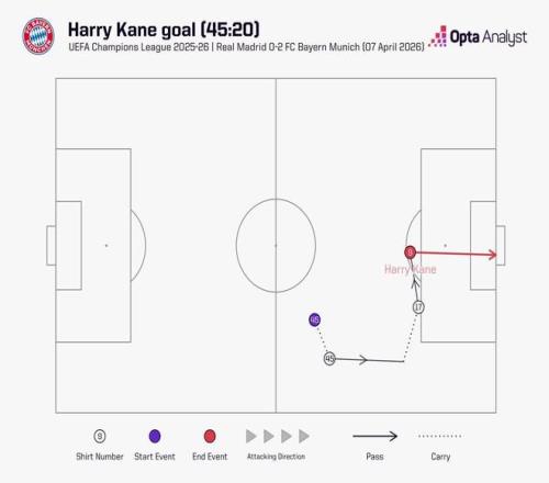 此役客場對陣皇家馬德里,凱恩在下半場開場僅20秒便取得進(jìn)球。