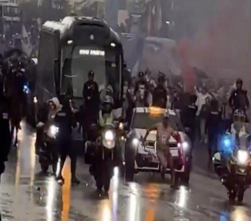 記者:皇馬大巴駛向伯納烏時(shí),突然出現(xiàn)一裸奔男子在馬路上跑
