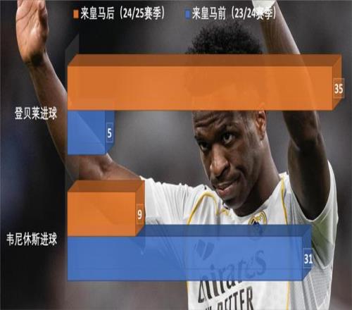 同樣的,在姆巴佩來皇馬前,韋尼休斯一個賽季打入35球,上賽季成為姆巴佩隊友后,韋尼休斯進球數(shù)暴跌到9個。