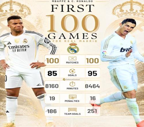 這也是為什么姆巴佩的皇馬前100場,他的球隊比C羅的球隊少進了65球,也就是場均少進0.65個進球。