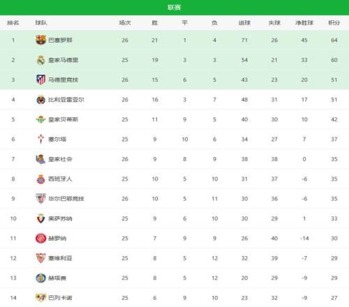41大勝!10絕殺!西甲最新積分榜:巴薩甩開皇馬,馬競反超黃潛