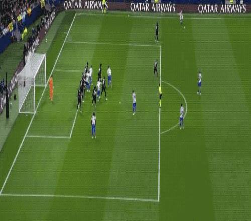 第23分鐘,格列茲曼開出任意球,維卡里奧已經(jīng)做出不可思議的撲救,但勒諾爾芒補(bǔ)射破門。