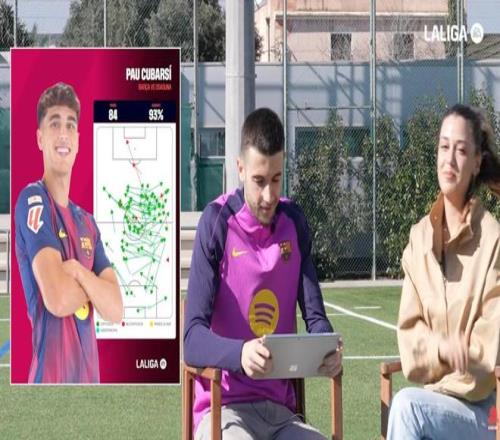你適應(yīng)得很快,隊友們也很歡迎你。不過在這里我們總會給球員準(zhǔn)備一些小挑戰(zhàn)。我們來考考你,看你對隊友了解多少。我們準(zhǔn)備了五張你隊友的傳球圖,你來猜猜是誰。第一張,這是對奧薩蘇納那場比賽,你們2-0贏球,拉菲尼亞梅開二度。從圖上看好像是一個中場,但其實不是。
