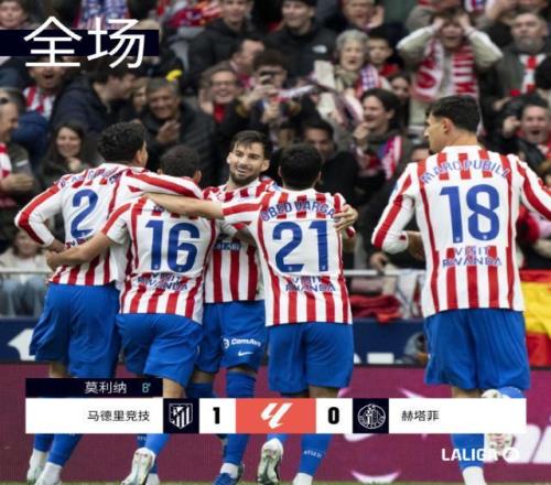 在馬德里的另一場比賽,馬競也貢獻了一記世界波,憑借莫利納開場8分鐘的禁區(qū)外爆射死角,馬競主場1比0小勝赫塔費,相同場次的情況下領先黃潛2分位居第3。