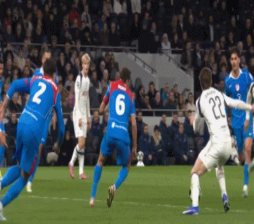 第52分鐘,哈維-西蒙斯兜射破網(wǎng),熱刺2-1!總比分4-6!