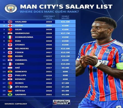 從德國轉(zhuǎn)會(huì)網(wǎng)的統(tǒng)計(jì)數(shù)據(jù)可以看到,羅德里當(dāng)前的年薪僅有1320萬歐元,排在曼城球員的第11位,不但遠(yuǎn)低于新援格伊的1800萬歐元,甚至比賴因德斯的1380萬歐元年薪還要低。