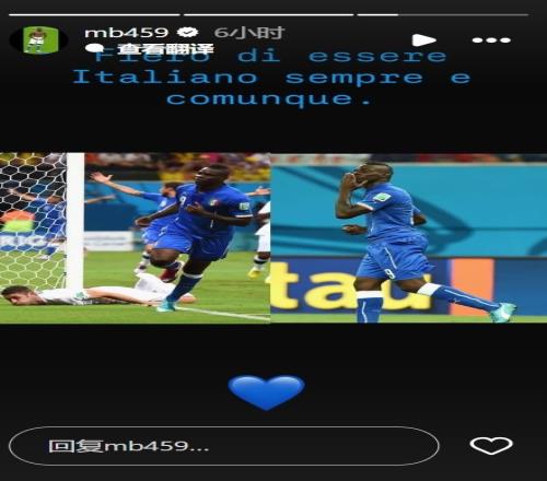 體育播報4月1日宣 35歲前鋒巴洛特利更新社媒,鼓勵無緣世界杯的意大利隊。
