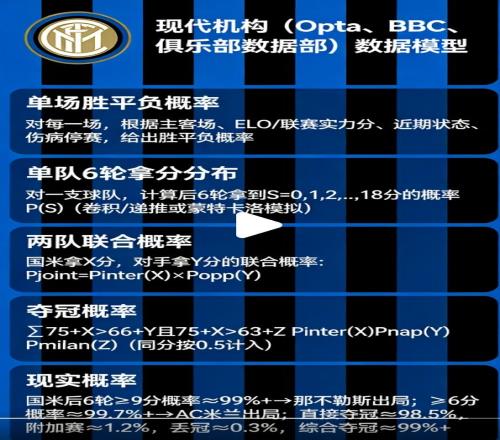 拿國際米蘭單賽季單場勝率做為依據(jù),最終得出的奪冠概率,其實不是什么數(shù)學(xué)真相,而只是同一種描述的不同說法而已。