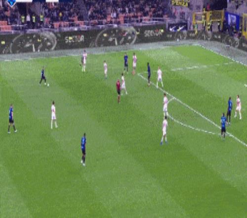 第31分鐘,迪馬爾科在禁區(qū)里接到隊(duì)友傳球,稍作調(diào)整后直接起腳抽射。皮球劃出一道美妙的弧線,直掛球門死角。1比0,國(guó)米打破僵持。
