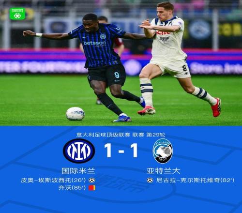北京時間3月14日意大利足球甲級聯(lián)賽第29輪,國際米蘭主場迎戰(zhàn)亞特蘭大。比賽中,國際米蘭球員完成助攻,皮奧-埃斯波西托率先破門;隨后亞特蘭大的尼古拉-克爾斯托維奇打入一球扳平比分;比賽尾聲階段,國際米蘭一名球員吃到第二張黃牌。最終雙方戰(zhàn)成1-1平。