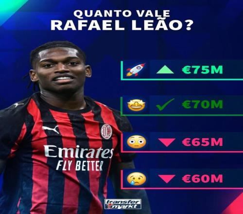 北京時(shí)間3月17日,德轉(zhuǎn)預(yù)熱了AC米蘭前鋒拉斐爾-萊奧的身價(jià)更新,他們給出了四個(gè)選項(xiàng),最高漲至7500萬(wàn)歐元,最低跌至6000萬(wàn)歐元。