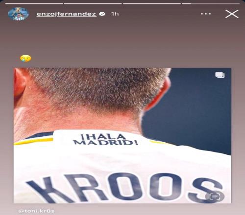 這很可能并不只是嘴上說說而已,就在2024年5月21日托尼-克羅斯宣布退役后不久,恩佐就在個人社交媒體上發(fā)表動態(tài)表達(dá)了對這位德國足壇巨星的不舍。