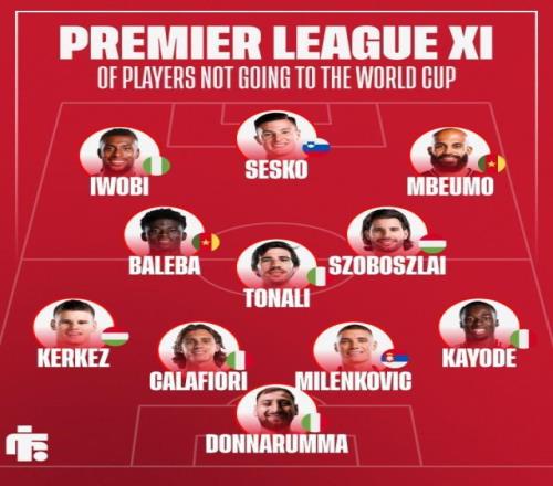 隨著世界杯參賽48隊(duì)全部確定,一些知名球星只能以觀眾身份觀戰(zhàn)。英國媒體Football Insider評出了無緣世界杯英超11人,索博、托納利、舍什科、姆伯莫在列。