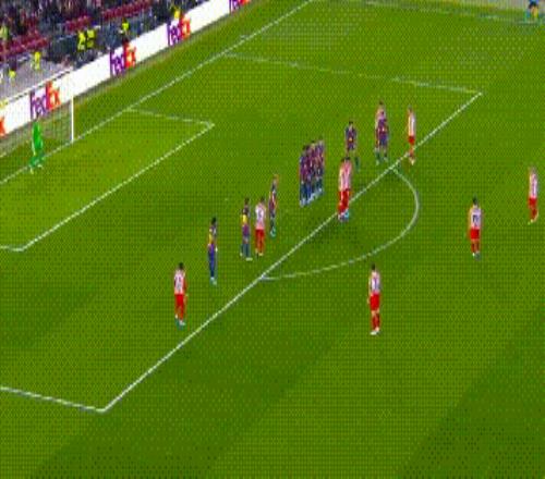 半場結(jié)束前,阿爾瓦雷斯主罰任意球,結(jié)果皮球越過人墻,幾乎貼著橫梁飛進(jìn)了巴薩的大門。這腳任意球,無論球速還是角度都俱佳,是毫無疑問的世界波,哪怕巴薩門將飛身撲救,都沒能碰到皮球。阿爾瓦雷斯的進(jìn)球,讓剛剛被罰下1人的巴薩雪上加霜,徹底陷入被動。