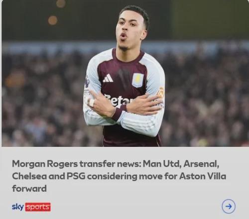 天空體育記者LT、KS和DK綜合啥消息,阿森納、切爾西、曼聯(lián)以及巴黎都在考慮今夏求購維拉的摩根-羅杰斯。