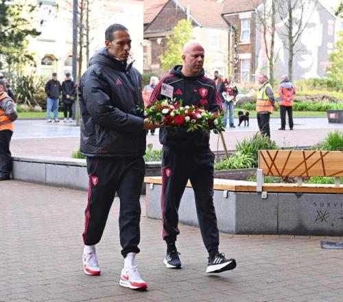 為表達(dá)哀思,利物浦一線隊(duì)、女隊(duì)以及U21、U18梯隊(duì)的主教練和隊(duì)長(zhǎng)范戴克今日前往安菲爾德的希爾斯堡紀(jì)念碑獻(xiàn)上花圈。俱樂部高層也參與其中,包括首席執(zhí)行官比利-霍根、傳奇球星達(dá)格利什爵士,以及俱樂部大使伊恩-拉什和娜塔莎-道伊。