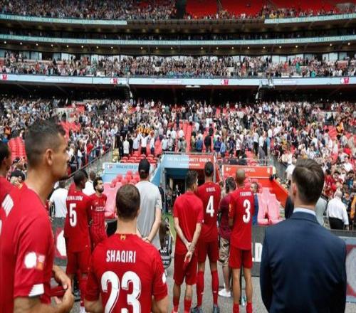 (克洛普帶領(lǐng)利物浦球員一起觀看曼城社區(qū)盾杯捧杯儀式)
