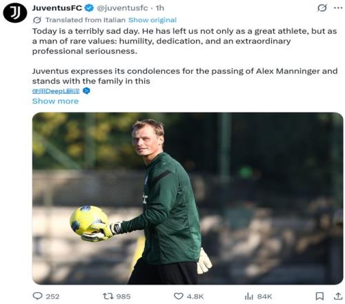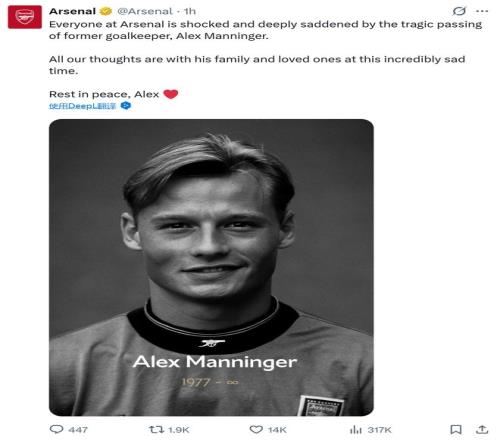 阿森納、尤文圖斯等俱樂部官方社交媒體也相繼發(fā)文,深切悼念昔日門將亞歷山大·曼寧格的離世。