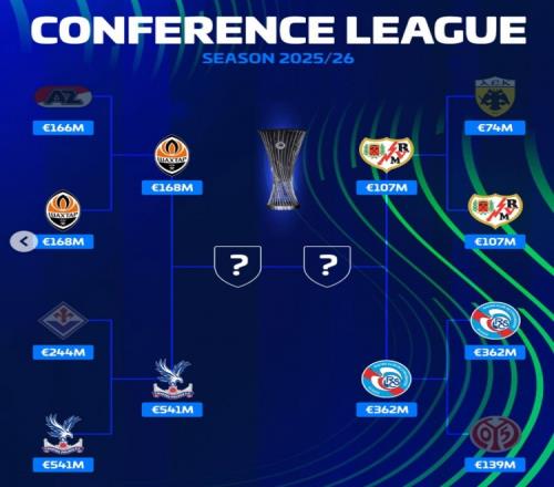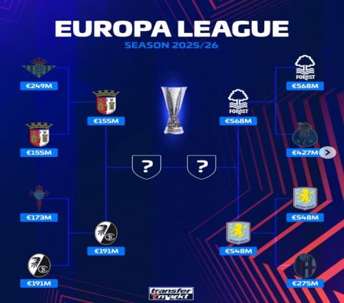 歐聯(lián)杯、歐協(xié)聯(lián)4強身價:森林5.68億歐居首,英超3隊均超5億歐