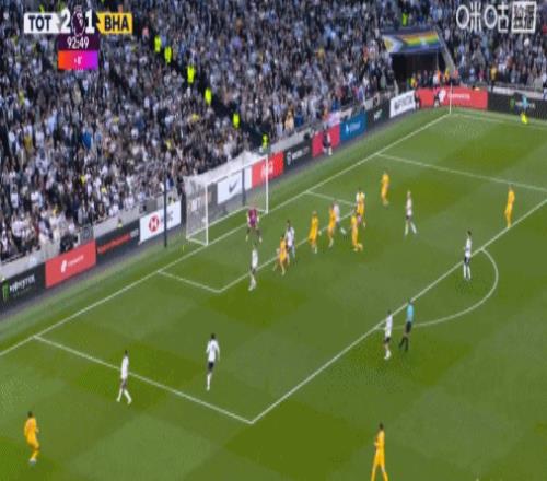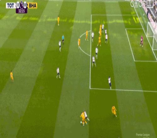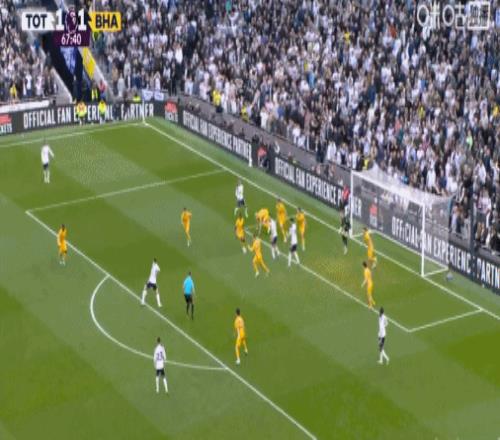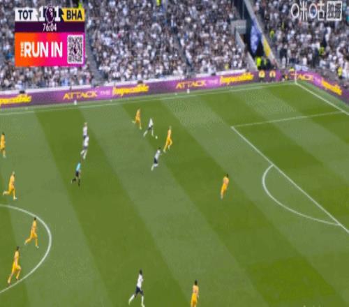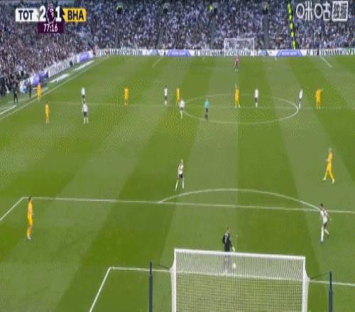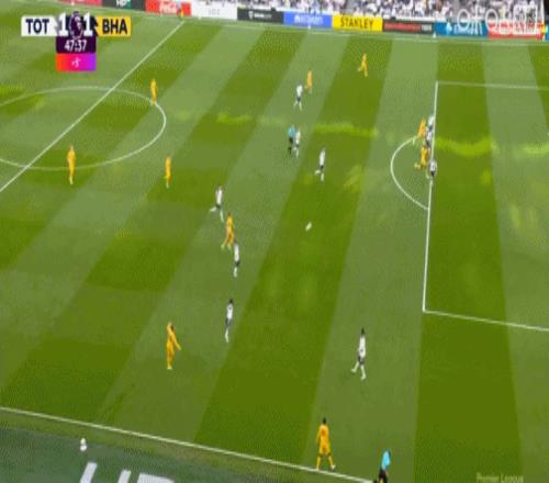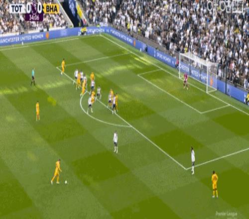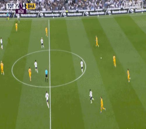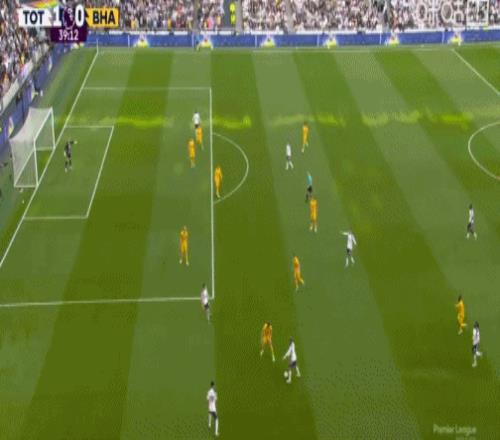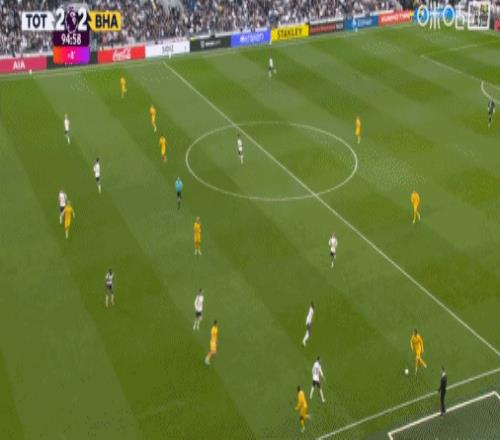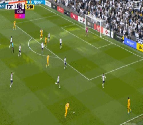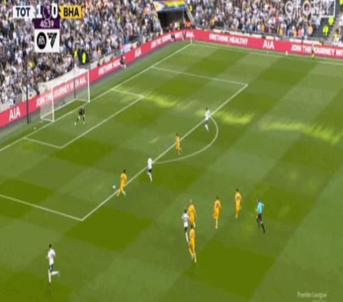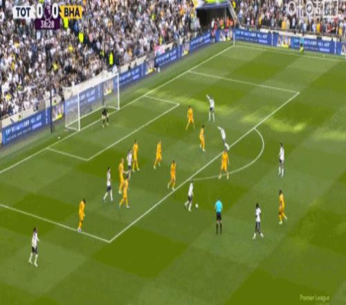 第39分鐘,西蒙斯傳球,波羅前插頭球破門,熱刺1-0布萊頓