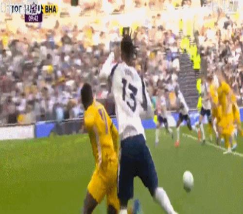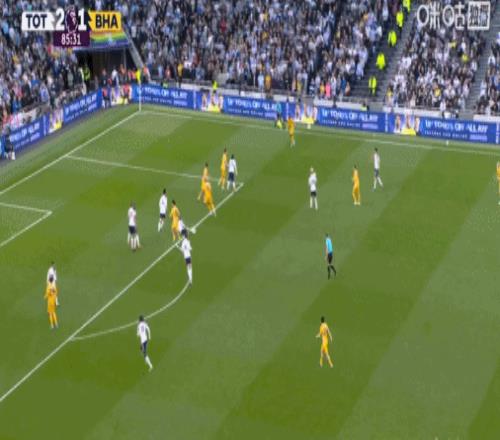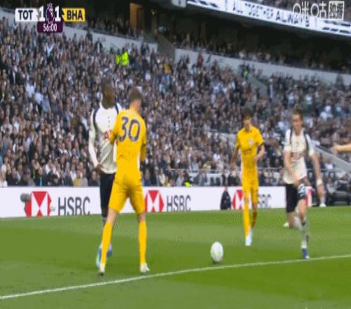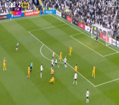 第90+5分鐘,丹索被搶斷,范赫克助攻呂特補時破門,布萊頓2-2熱刺