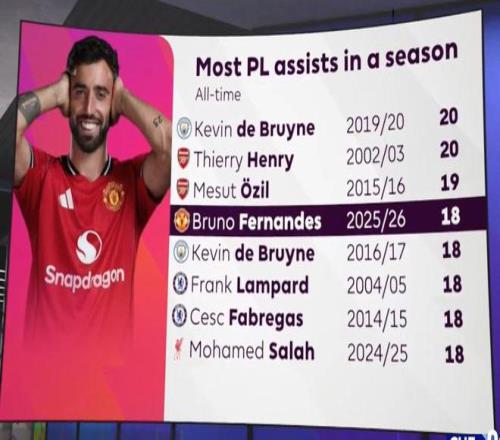 曼聯(lián)剩余的5場英超中只有2個客場比賽,因此留給B費挑戰(zhàn)這一紀(jì)錄的機會不多,他需要場均1次助攻才能做到,難度比突破20次助攻的紀(jì)錄大一些。