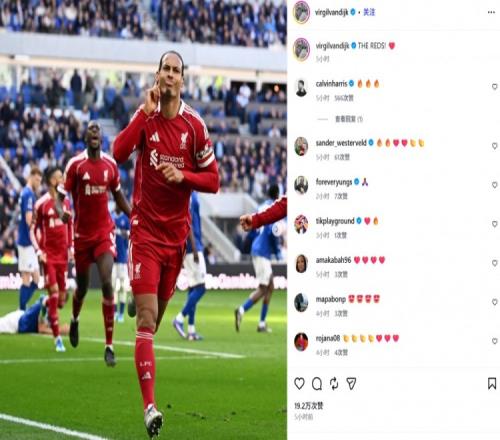 范戴克也在賽后通過社媒曬出自己進(jìn)球后的慶祝照,并配文:“紅軍!”