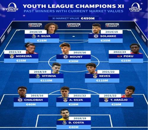 北京時間4月24日,在皇馬U19贏得了本賽季歐青聯(lián)的冠軍之后,德轉統(tǒng)計出了贏得過歐青聯(lián)冠軍目前德轉身價最高的11人陣容,巴黎的中場雙星維蒂尼亞和若昂-內(nèi)維斯領銜,芒特在列。