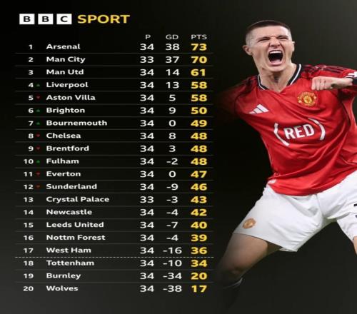 今晨英超第34輪最后一場,曼聯(lián)主場2比1擊敗布倫特福德。紅魔目前積61分,暫列積分榜第3,在聯(lián)賽僅剩4輪的情況下,領(lǐng)先第6名布萊頓11分,歐冠資格基本到手。