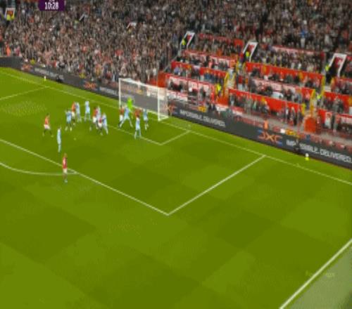 再銜接上定位球,曼聯(lián)的進(jìn)攻就顯得更具威脅,于是在第11分鐘,曼聯(lián)就利用定位球打開了比分: