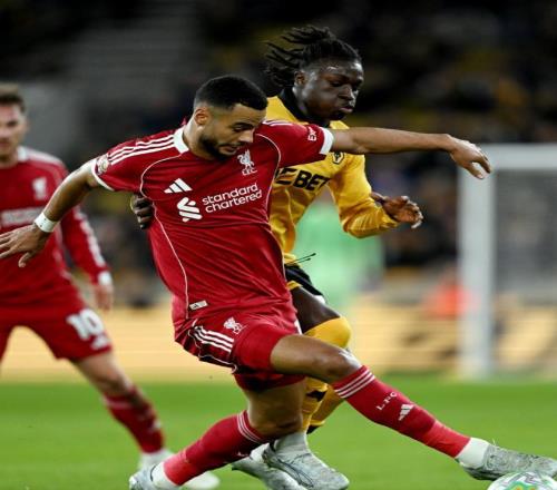 第40分鐘利物浦獲得了一個位置不錯的前場定位球機(jī)會,索博斯洛伊將球開到狼隊(duì)禁區(qū),麥卡利斯特的頭球攻門,沒有能夠打在球門范圍之內(nèi),半場結(jié)束之前,加克波左路內(nèi)切打門,皮球被防守球員擋出了底線,兩支球隊(duì)帶著0-0的比分,回到了中場更衣室。