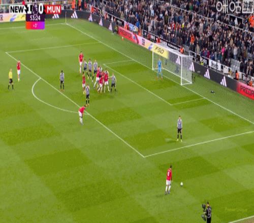 第45+9分鐘,B費(fèi)定位球助攻,卡塞米羅搶點(diǎn)頭槌破門,曼聯(lián)1-1!