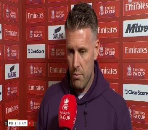 足總杯1/8決賽,狼隊主場1-3輸給利物浦,狼隊主帥羅伯-愛德華茲賽后接受了TNT體育的采訪。