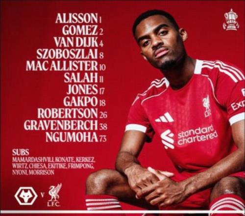 利物浦客戰(zhàn)狼隊:薩拉赫搭檔加克波,索博、麥卡利斯特出戰(zhàn)