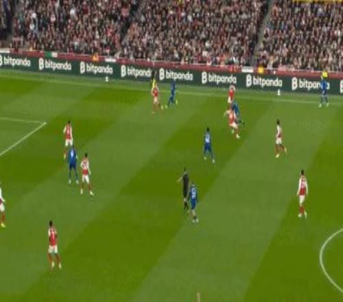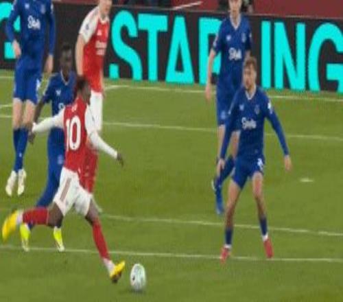 第13分鐘,賴斯左路45°傳中,蘇維門迪頭球后蹭,薩卡近距離沖頂,皮克福德回敬神撲,埃弗頓逃過一劫。