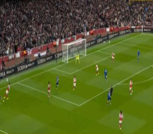 第64分鐘,薩卡右路策動攻勢,賴斯巧妙做球,埃澤順勢兜射,直奔左下角而去,但角度要得太刁鉆,皮球擦柱而出。