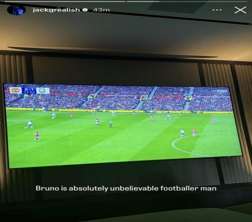 現(xiàn)租借效力于埃弗頓的格拉利什,在社媒上曬出了他觀看本場比賽的照片并配文:布魯諾絕對是一位不可思議的球員。